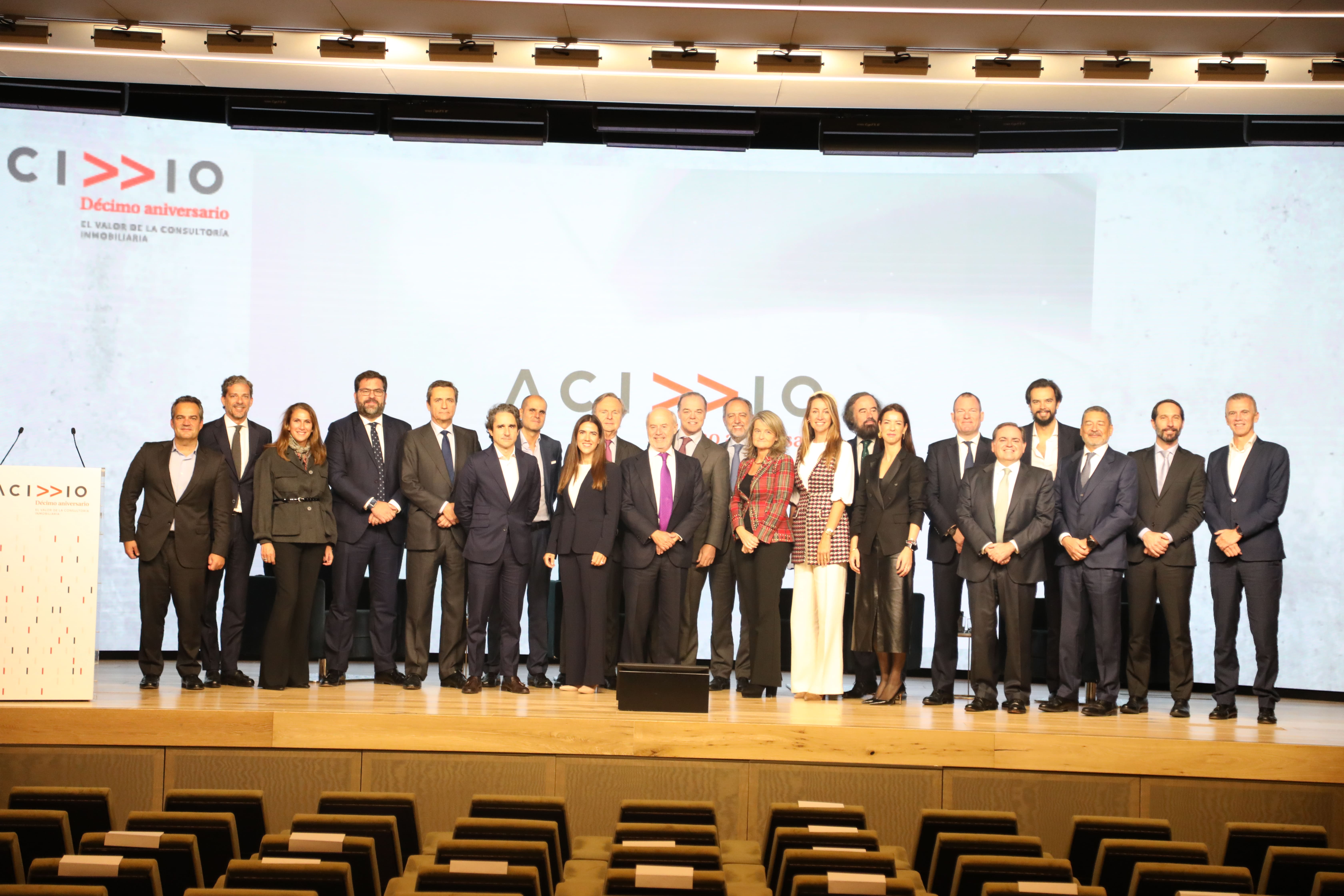 La Asociación Española de Empresas de Consultoría Inmobiliaria (ACI) ha conmemorado su décimo aniversario con un evento al que han asistido representantes del Ministerio de Transportes, Movilidad y Agenda Urbana, la Comunidad y el Ayuntamiento de Madrid, entre otras personalidades de los sectores público y privado, en el Auditorio El Beatriz, de Madrid.