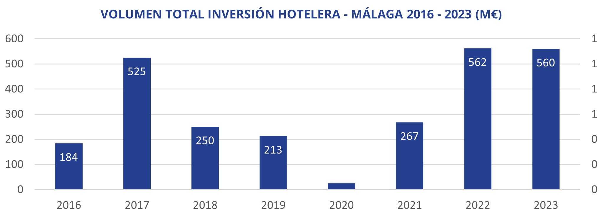 La provincia de Málaga registró un volumen total de inversión hotelera de 560 millones de euros en el ejercicio 2023, con la adquisición de 21 hoteles y aproximadamente 3.047 habitaciones, una cifra muy similar respecto al año anterior según el Informe de Inversión Hotelera en España 2023 elaborado por Colliers.
