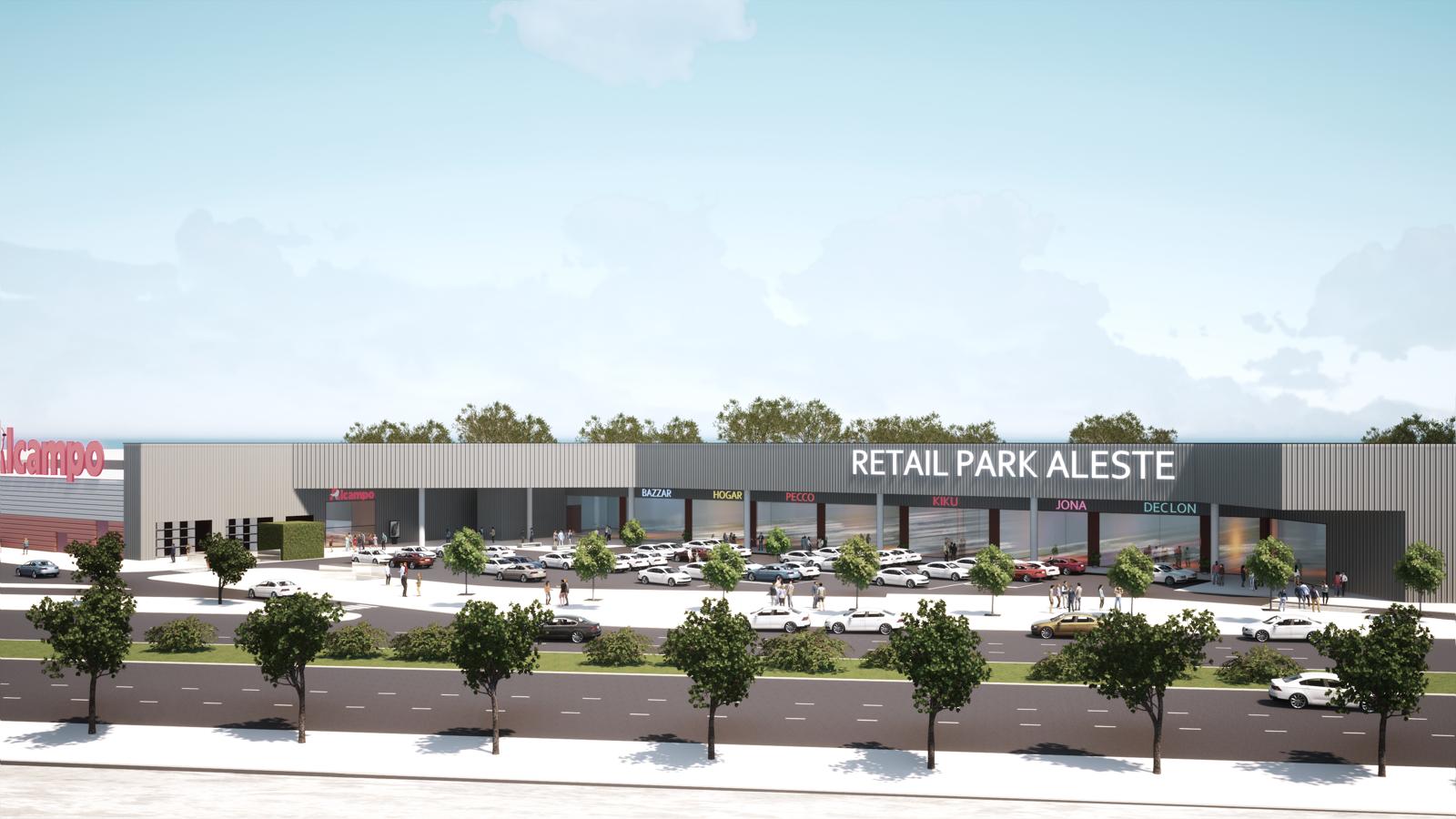El parque comercial “Aleste Park” se ubicará junto a la galería comercial del centro comercial Aleste Plaza, que cuenta con un hipermercado Alcampo de 13.000 metros cuadrados de superficie, así como medianas superficies de deportes y gimnasio (Sprinter y AreaFit), establecimientos relacionados con el mundo animal y clínicas veterinarias (Kiwoko y Canitas), de ocio infantil y hogar (Rapimueble). Además, el centro comercial dispone de 1.200 plazas de aparcamiento.