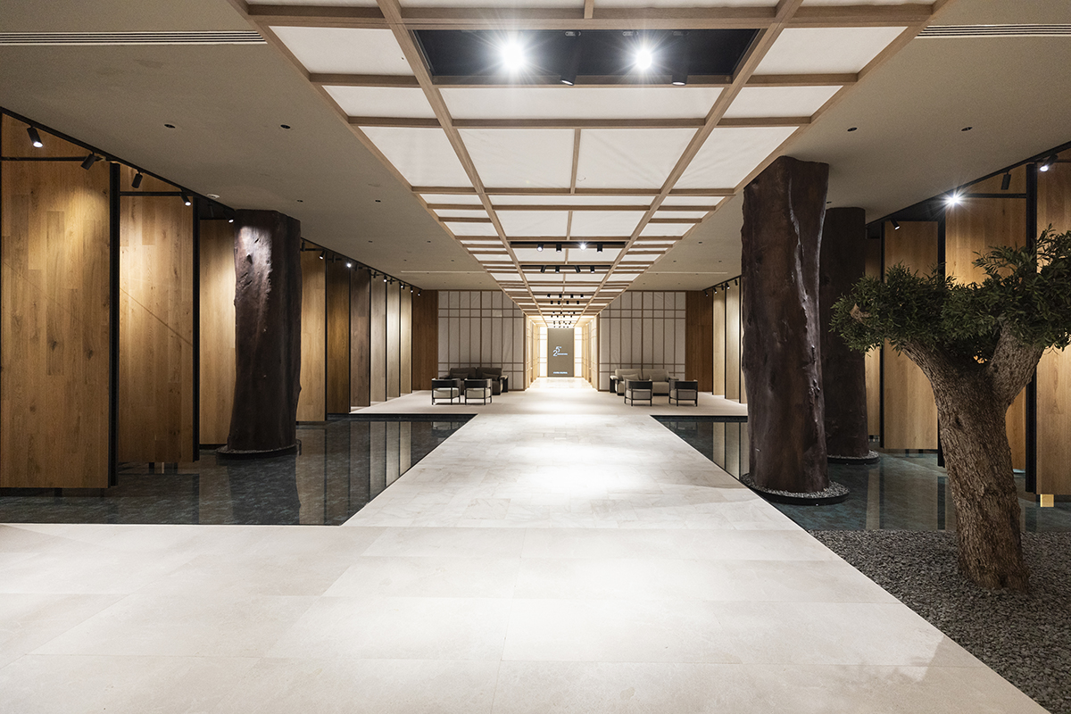 El grupo empresarial ha renovado sus showrooms con el objetivo de mostrar la versatilidad de sus materiales y ofrecer experiencias inmersivas y sensoriales a los participantes. PORCELANOSA ha destinado un espacio de 1.000 m2 al porcelánico de gran formato, XLIGHT, en el que ha recreado un restaurante y dos viviendas. Junto a ellos, sorprende el espacio conceptual, proyectando una galería de arte. Los diferentes arcos funcionan como soporte para las luminarias de autor, dispuestas como si de obras de arte se tratara.