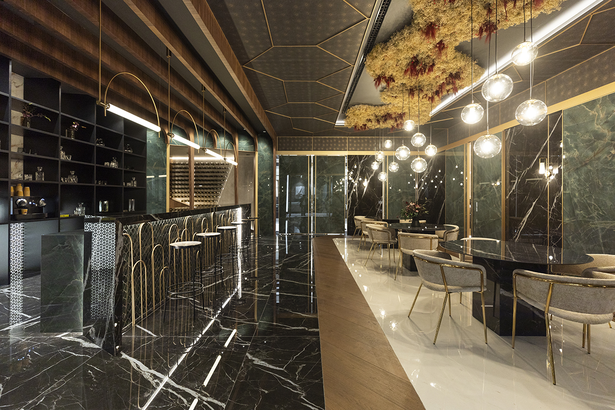 Ambiente que simula un restaurante en el showroom de XLIGHT.